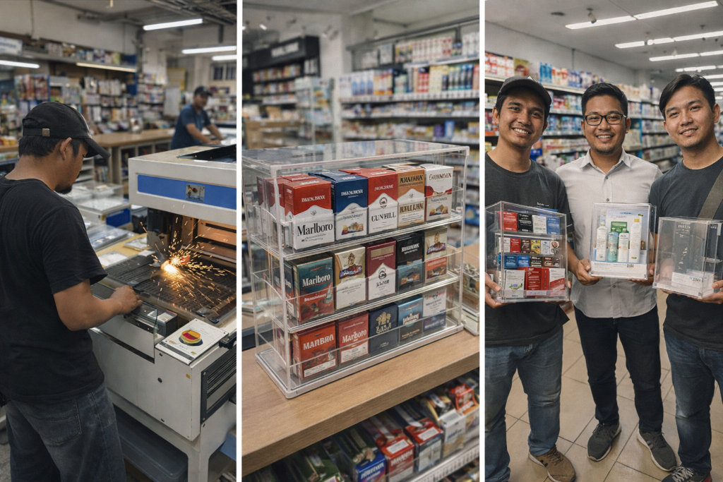 Kami menyediakan semua yang Anda butuhkan untuk memulai bisnis akrilik dengan risiko terkontrol dan sistem yang sudah berjalan.